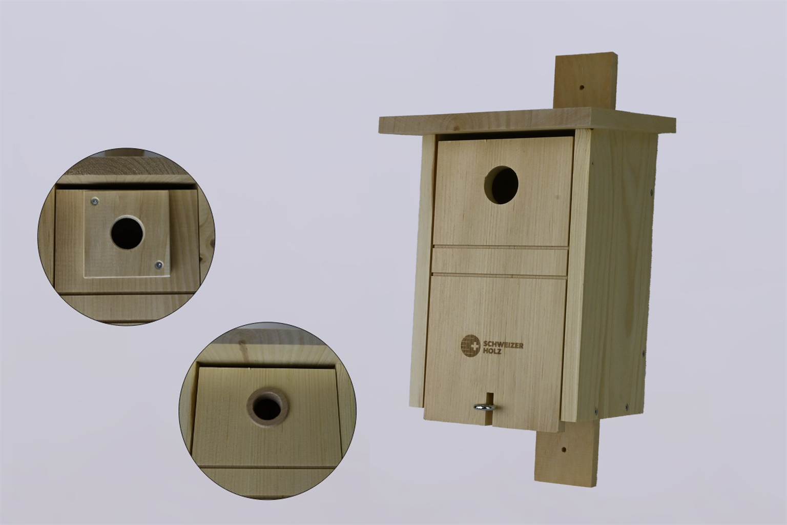 aus Weymouth-Kiefer massiv natur, geschraubt, Einflugloch ø 34mm, inkl. 2 Redzuzierungen: